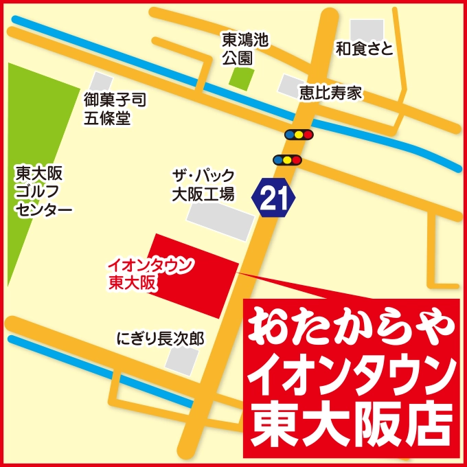 〒578-0973 大阪府東大阪市東鴻池町1-6-30 イオンタウン東大阪 |