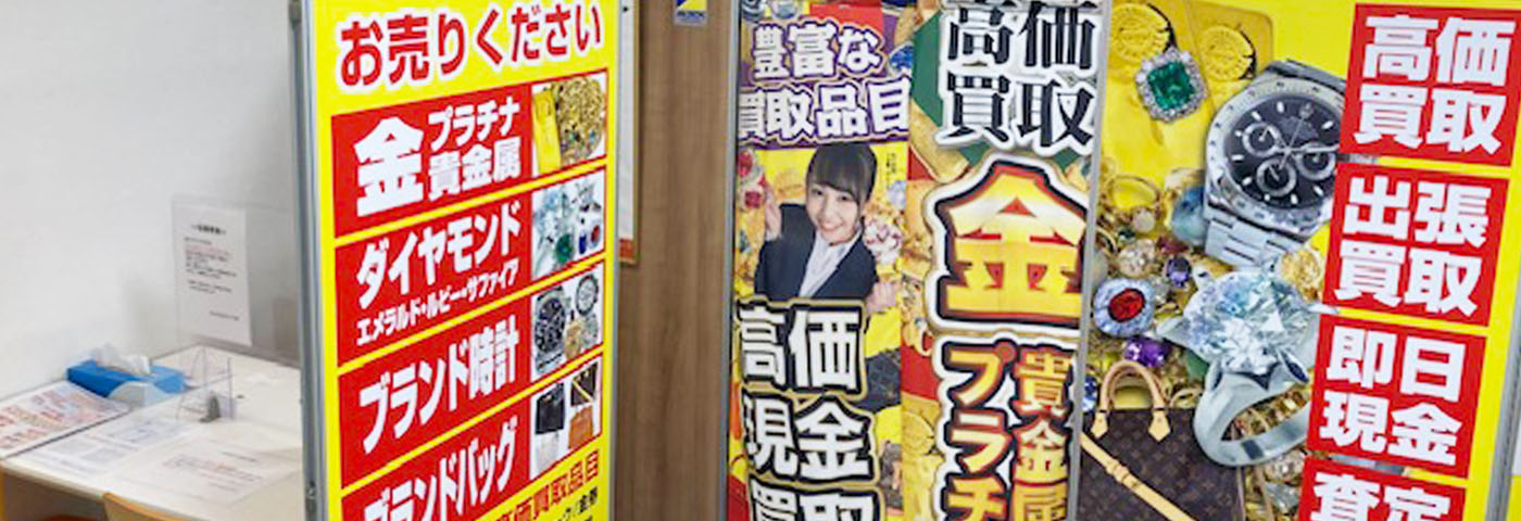 - 貴金属、金、ダイヤ、宝石、ブランド時計、ブランドバッグ等のブランド品、切手、カメラ、金券など、沢山のお品物を買取しています。まずは店頭にお持ちくださいませ。