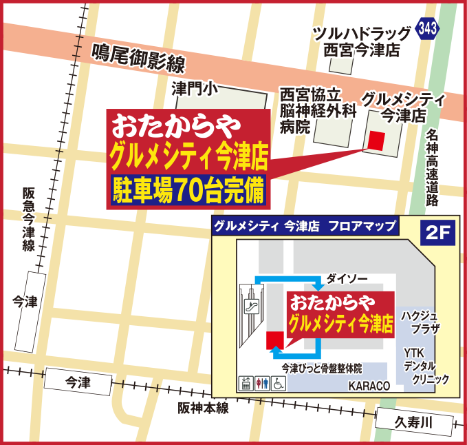 〒663-8211 兵庫県西宮市今津山中町11-9 グルメシティ今津店2F |
