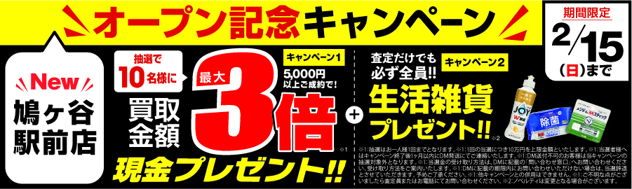 おたからや鳩ヶ谷駅前店 HPへようこそ!