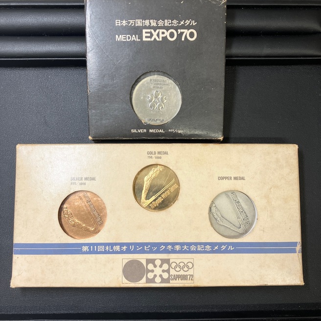 大阪万博「EXPO’70」のシルバーメダルや、札幌オリンピック「SAPPORO’72」の金・銀・銅メダルセットなど、当時の熱気や時代を感じられるアイテムがまだまだお手元に眠っている方も多いんです⛷️🌏