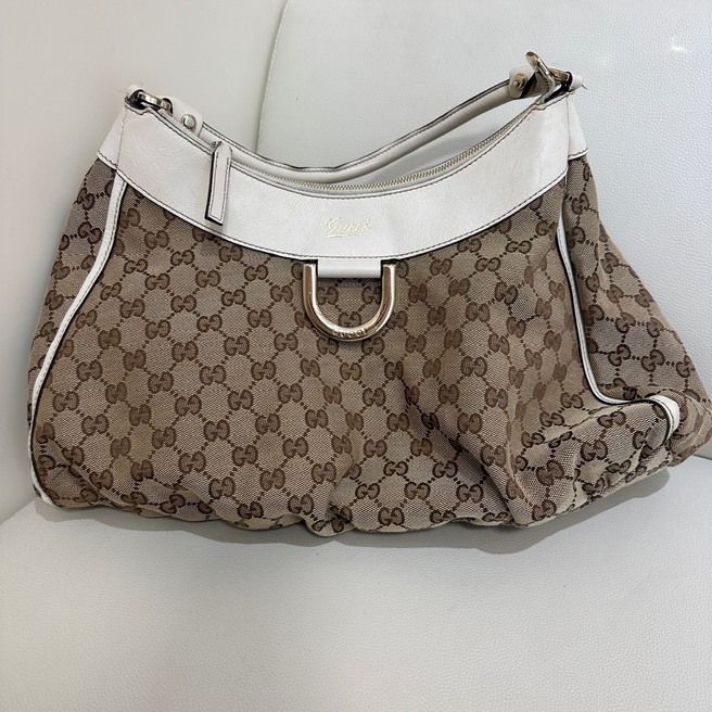 定番のGGキャンバスにホワイトの革が映える、とても上品なお品物です✨