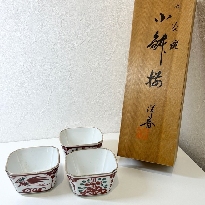 赤と緑の鮮やかな絵付けが施されている素敵な小鉢を高価買取させていただきました♪