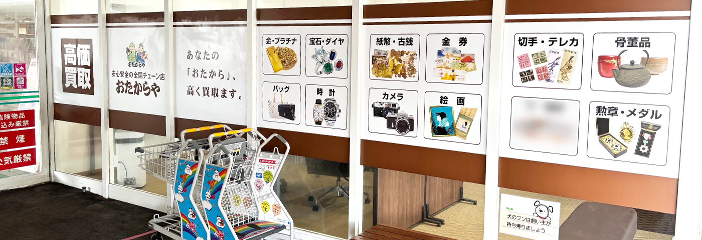 - 貴金属、金、ダイヤ、宝石、ブランド時計、ブランドバッグ等のブランド品、切手、カメラ、金券など、沢山のお品物を買取しています。まずは店頭にお持ちくださいませ。