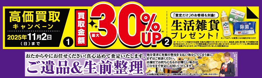 さらに、プロの査定員が対応させていただくため、お見せいただいたお品物の価値を見誤ることなく高価買取をすることが可能になっています。
