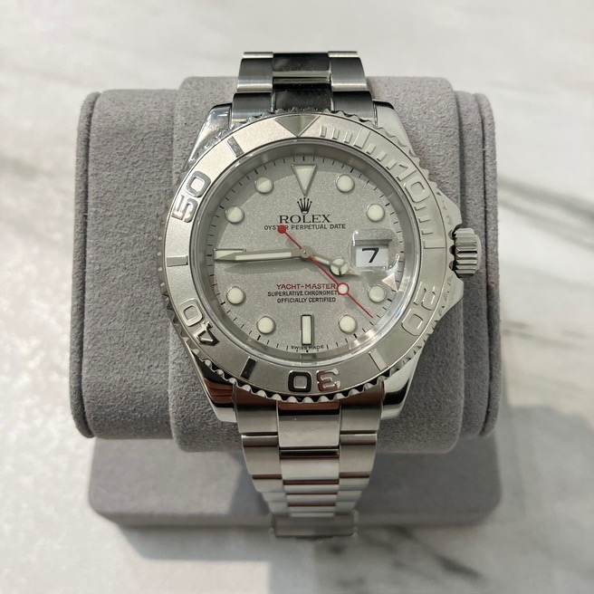 ヨットマスターは、海をテーマに誕生したラグジュアリースポーツモデル。プラチナベゼルの輝きとステンレスの重厚感が美しく、上品な存在感を放つ一本です。実用性と高級感を兼ね備え、資産価値も高いモデルとして長年人気が続いています✨