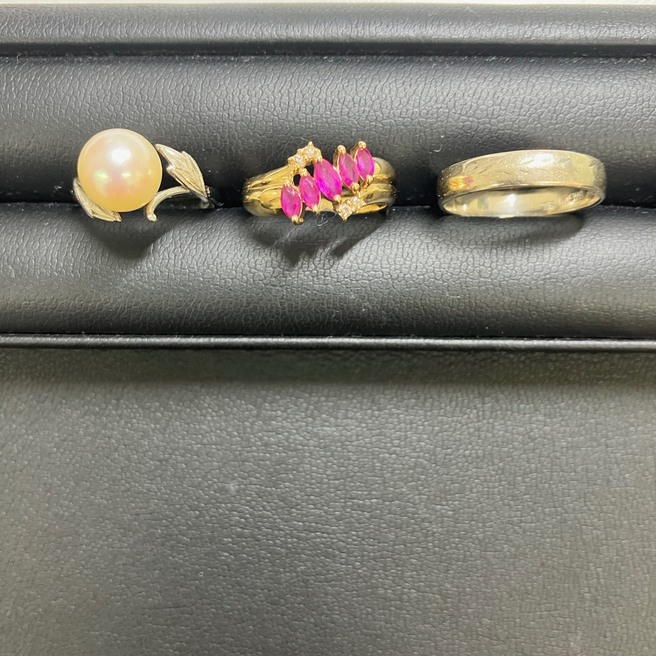 パールの指輪とルビーの指輪とプラチナの指輪の計3点です😌