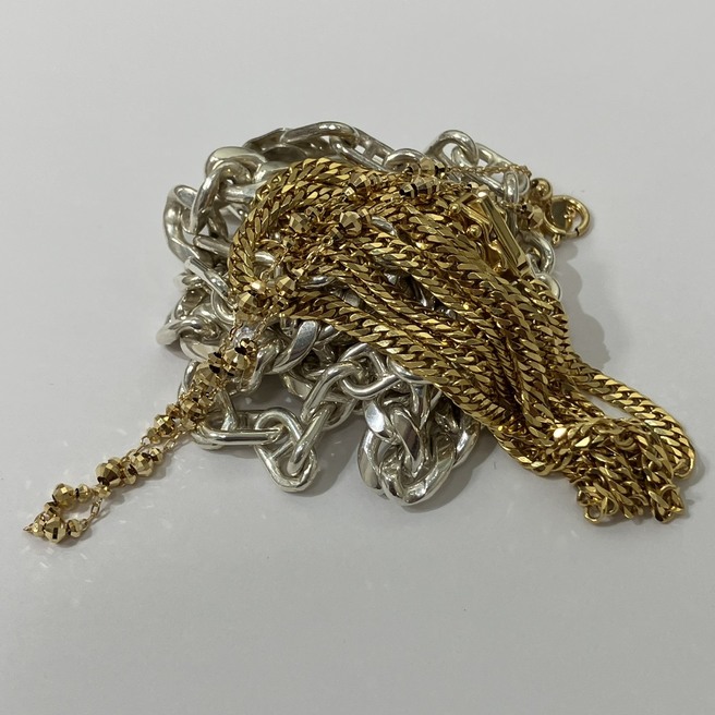 切れてしまったネックレスや、絡まってしまったチェーン、片方だけのアクセサリーでも問題ございません。刻印が不明なお品物でも、当店では一点一点しっかりとお調べいたします❗️