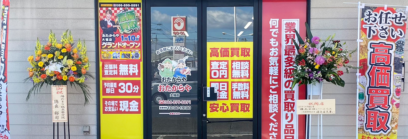 おたからやには幅広い買取品目がございます。おたからやへ来ていただければプロの査定員がどんなお品物でも大量のお持ち込みでも素早く対応いたします。