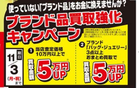 ブランド品買取強化キャンペーン 期間11月3日(月・祝)まで