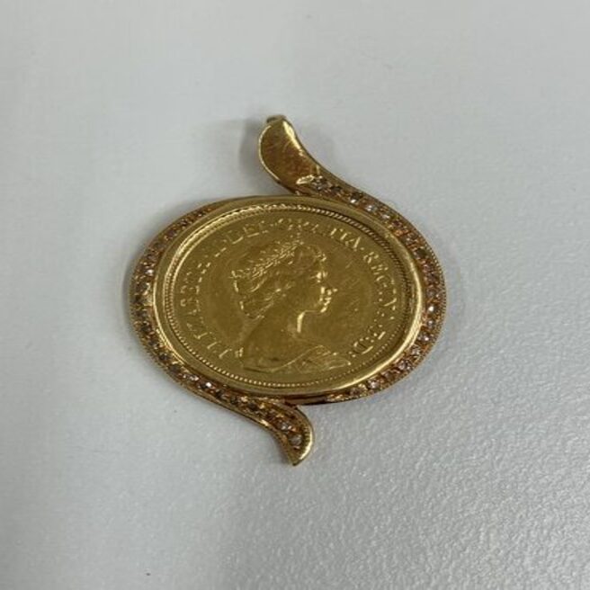 自分で購入しても何十年も経ってしまうと忘れてしまいますね!私も、そうです。そういった物でもお調べいたしますので、是非ご相談くださいませ。こちらの金貨は、K22金でした。枠と同じK18だと思ってみえたので、とても喜んでいただきました🤩