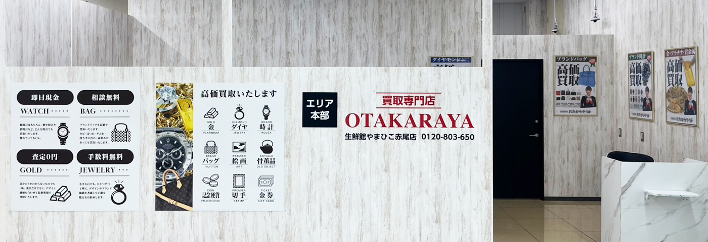 おたからやには幅広い買取品目がございます。おたからやへ来ていただければプロの査定員がどんなお品物でも大量のお持ち込みでも素早く対応いたします。