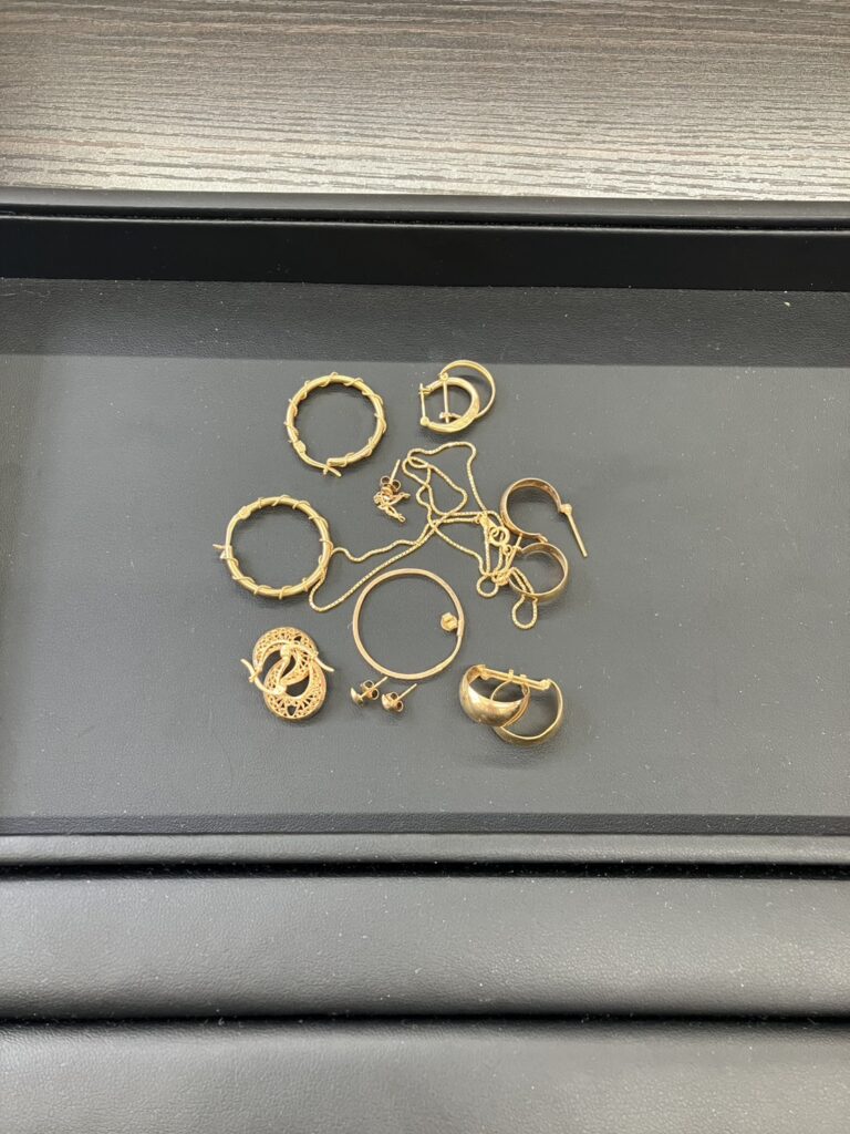 お持ち込みなされたお客様、「ピアスは片方しかなく、キャッチのみであったり、ネックレスも切れているけど大丈夫かな??買取してもらえるのかな??金製もあるのかな??」