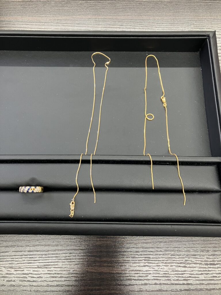 こんにちは、おたからや高富店 堀部です。本日は先日お買取りさせていただきましたK18ネックレス(切れ、破損)、K18リング(石取れ、破損)のご紹介です!