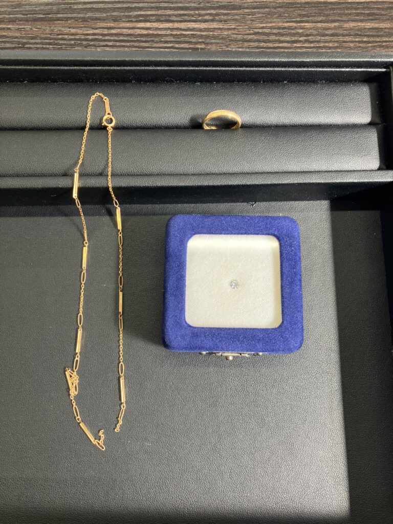 お持ちいただいたネックレス、ダイヤルースお客様は「ネックレスは切れているし、ダイヤルースもそれだけでおねだんつくのかしら?」とかなりご不安な様子でした。