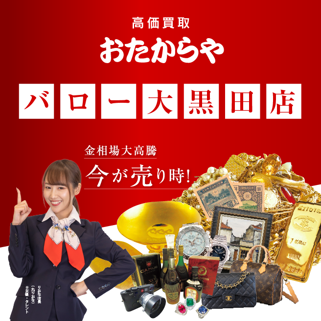 おたからやには幅広い買取品目がございます。おたからやへ来ていただければプロの査定員がどんなお品物でも大量のお持ち込みでも素早く対応いたします。